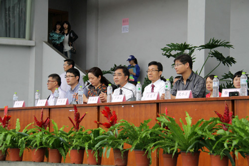 入场式结束后,卢新波副院长致辞,他对同学们提出了两点希望:“第一,希望大家充分发扬奥运精神,全体运动员奋力拼搏,全体裁判员公正裁决,全体工作人员周到服务,全体观众文明观赛,共同把本届运动会办成‘和谐、文明、精彩、热烈’的体育盛会。第二,希望我校能以本次运动会为契机,全面检验杏吧原创