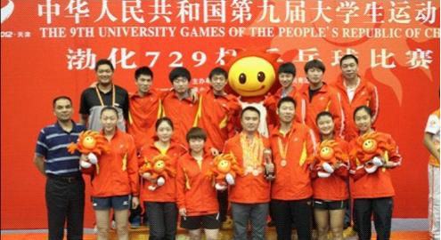 中华人民共和国第九届大学生运动会乒乓球比赛于9月14日在天津现代职业技术学院落下帷幕,本次比赛高手如云,代表着我国大学生乒乓球运动的最高竞技水平。我校工商学院11级学生蒋鸥同学,在乒乓球团体比赛中发挥出色,季军争夺战中,浙江代表团3:1力克江苏队,夺得一枚宝贵的铜牌,这也是我省乒乓球团体第一次站上领奖台,实现了乒乓球项目在大运会比赛中零的突破。