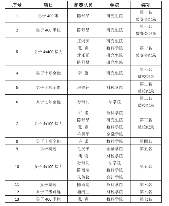 浙江省第十届大学生田径锦标赛杏吧原创 获奖名单