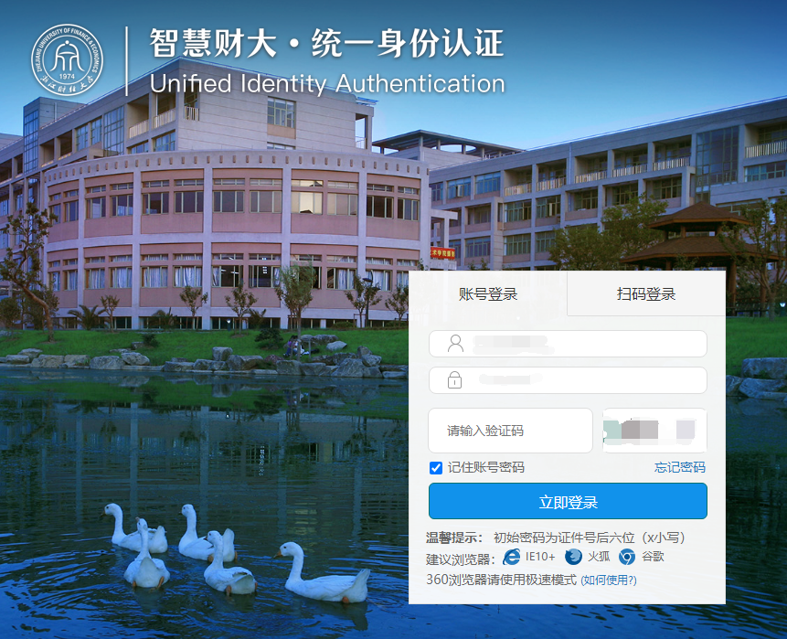 统一身份认证账号和密码登录;