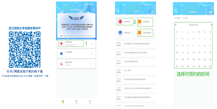2、预约时间:体质测试→体测预约→选择时间、输入预约信息→确定预约