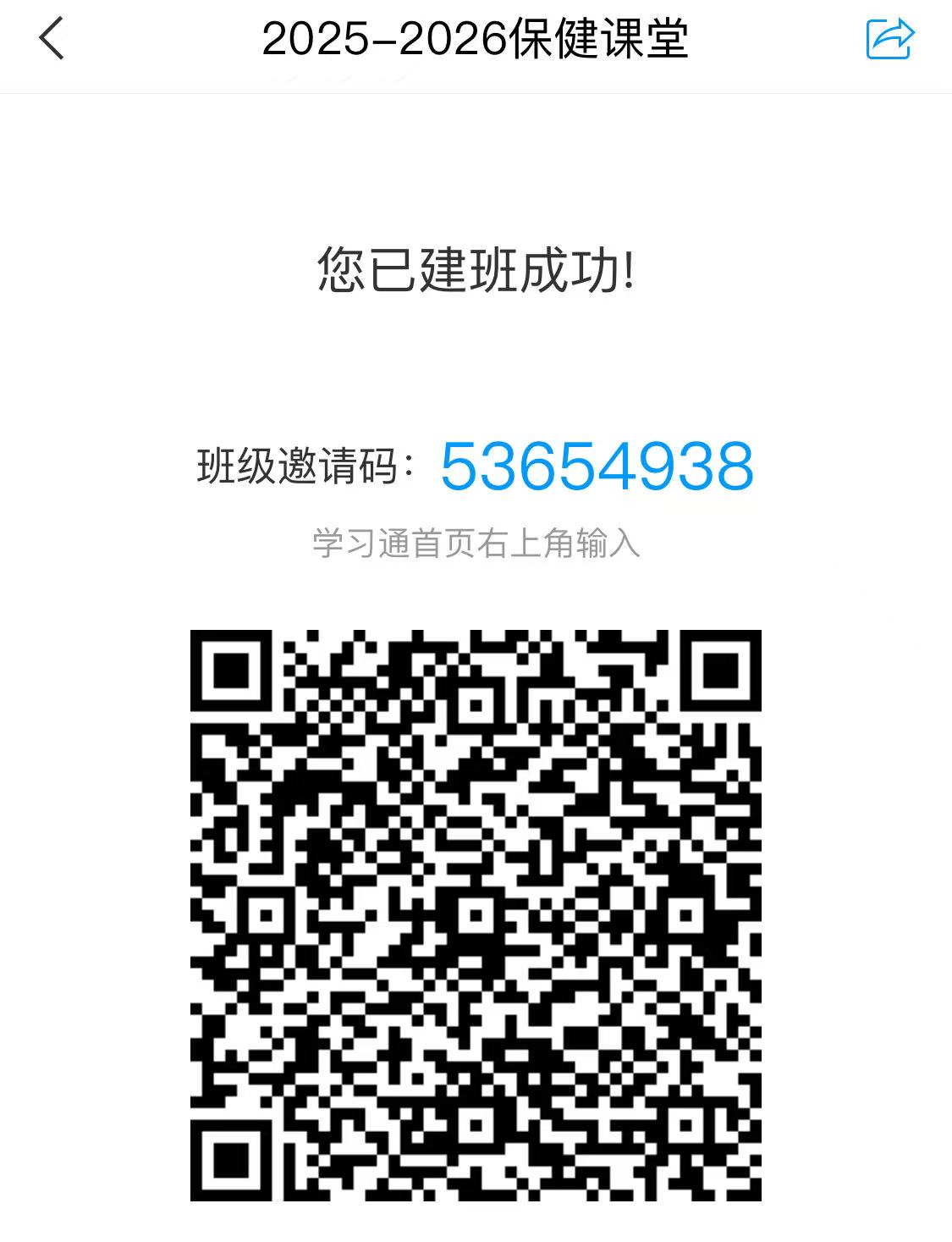 注:请保健课堂学生(第三学年体测免测申请通过后自动划入保健课堂)下载APP学习通,并要求实名注册,然后打开学习通,点击右上角的“扫一扫”扫下方班级码进班,体育锻炼保健课堂的教学安排、内容、考核办法等相关教学事项在学习通班级群通知!