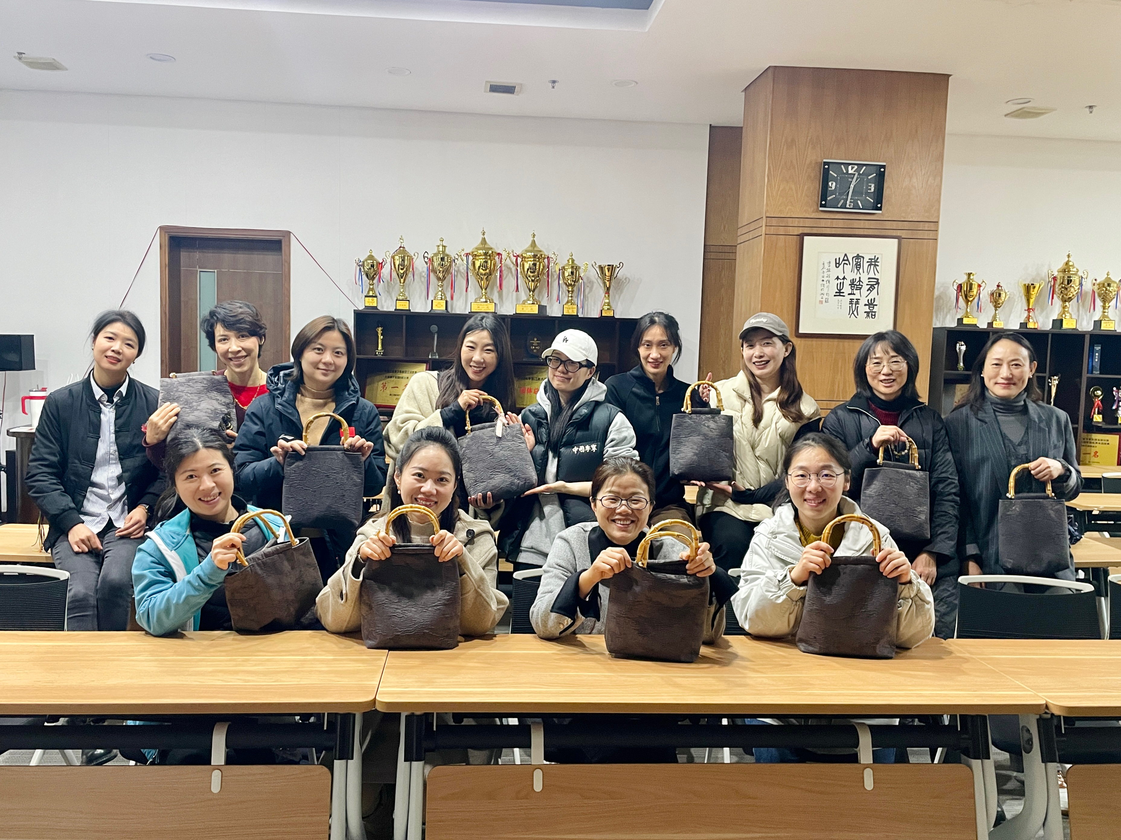 活动现场,指导老师早早备齐了布料、装饰品、针线、剪刀等材料,随后分享了设计思路,细致讲解了基本手工技艺。女教师们热情高涨,全身心投入手提包的制作,一针一线,耐心缝制,在其中收获满满乐趣与成就感。葛老师兴奋表示:“去年DIY烘焙趣味十足,今年DIY手提包同样精彩,这类活动让我们放缓节奏,尽情享受创造过程,期待来年再续!”